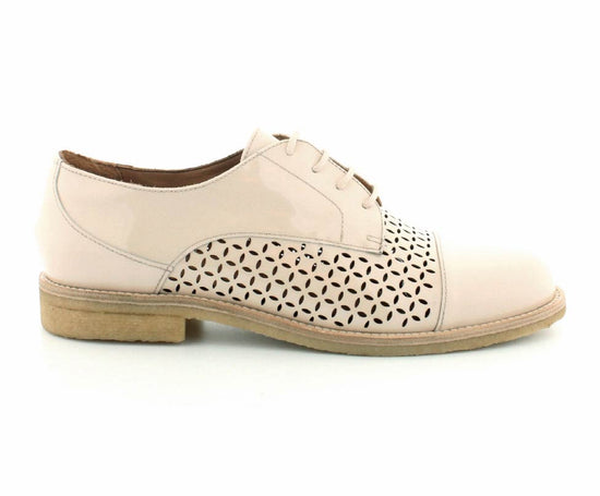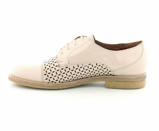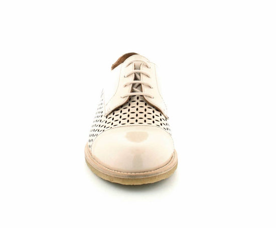 Flot og elegant laksko fra BilliBi i en lækker lys farve. Skoen er en snøresko med små udskæringer i skindet og med skindfoer indeni. Der er bløde fleksible rågummisåler under hele bunden.