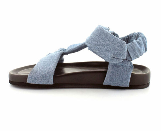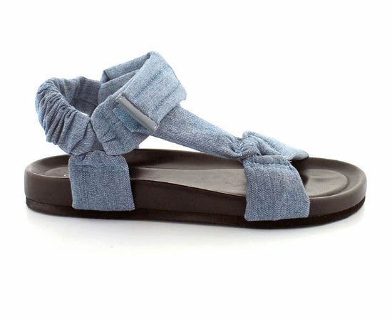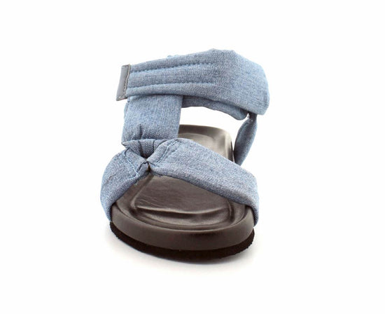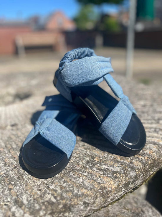Super smarte sandaler fra Copenhagen Shoes model Summer Denim. Sandalen er lavet i lyseblåt stof med brede vateret remme, hvor den øverste kan justeres med velcro. Der er elastk ved hælremmen, så den har et godt hold på foden. Bløde fleksible såler med lidt svangstøtte.