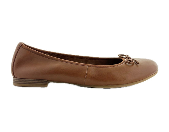 Flot klassisk cognac skind ballerina fra Tamaris. Skoen er lige til at hoppe i med bløde skindsåler indeni med "Touch It" så de er bløde. Fleksibel og let sål.
