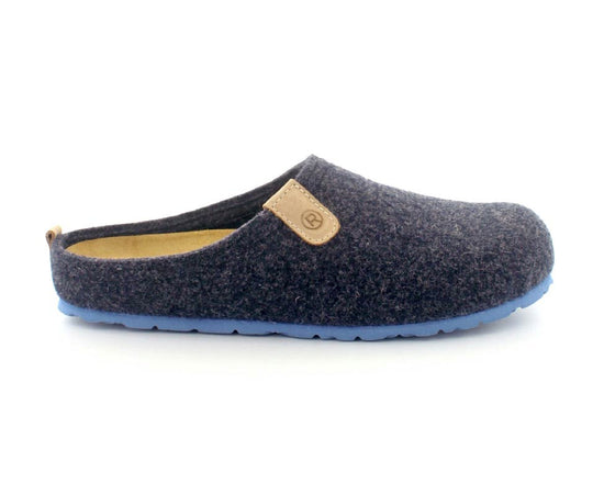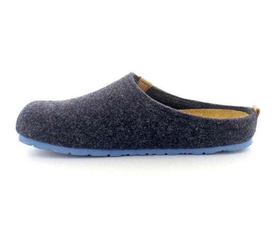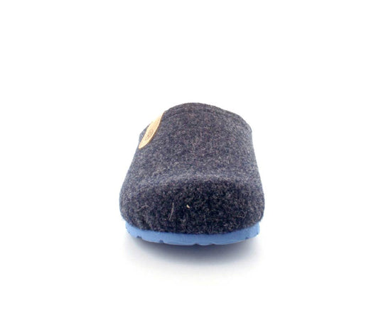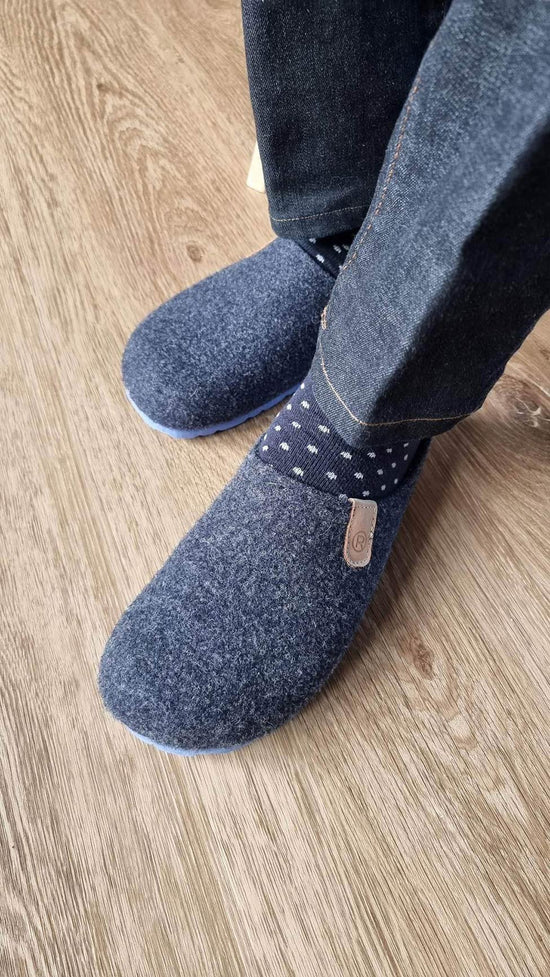 Super smart hjemmesko fra Rohde i recycle uld. Skoen er lige til at smutte i med en lækker ruskindssål, hvor der både er svang og fodseng. Skoen er lige til at smutte i og har en flot mørkblå farve og lysblå såler. God bred i modellen.