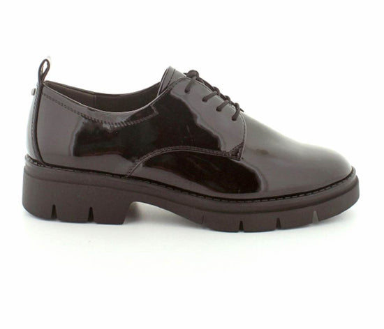 Super smarte snøresko fra Tamaris i sort lak. Det er med lidt grovere såler, der er bløde og fleksible. Skoen rummer godt i bredden og har bløde Touch It såler indeni.