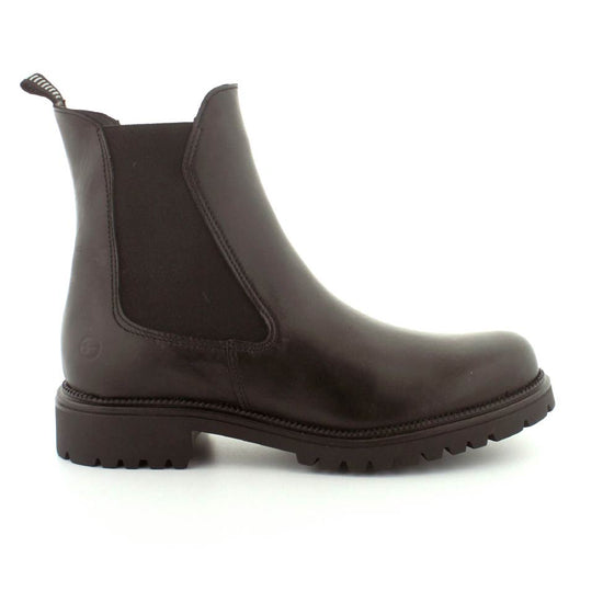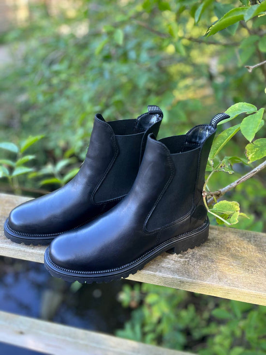 Super smarte chelsea boots fra Tamaris i sort skind. Lige til at trække på med elastik på begge sider. Dejlige bløde og fleksible såler under bunden.
