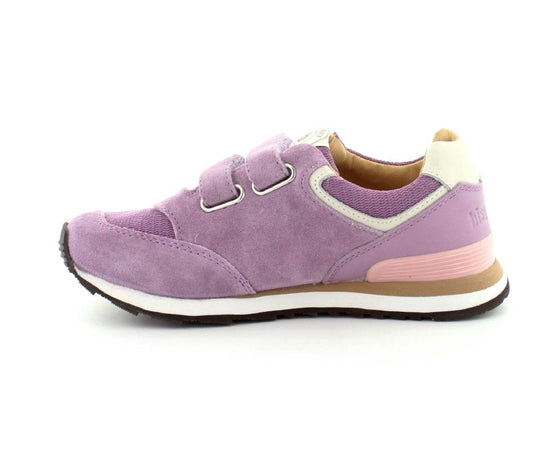 Super smarte sneakers fra Bisgaard model Winston i en flot lyslilla farve. Skoen er lavet i ruskind, skind og tekstil. Nem at komme i med en bred regulerbar velcrolukning. Skindfoer indeni og EVA såler med gummi under.