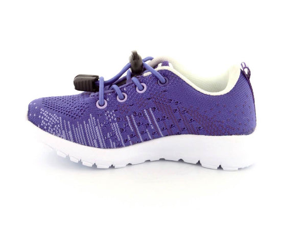 Super smarte sneakers fra Kangaroos i en flot lilla farve. Skoen er lige til at smutte i med elastiksnøre og lukning. Der er god fast hælkappe, aftagelige indlægssåler og en hemmelig lomme i pløsen. Bunden er meget let, blød og fleksibel.