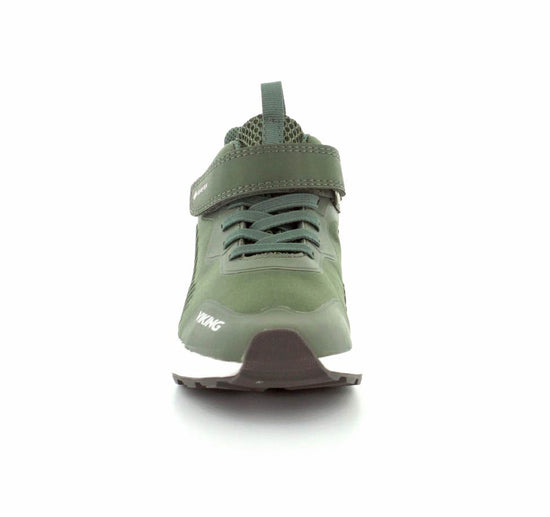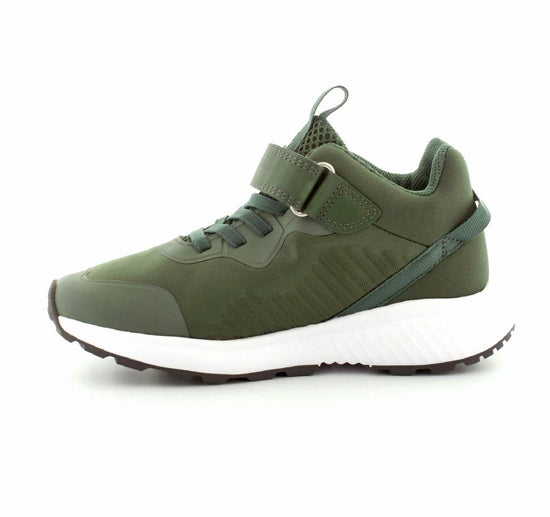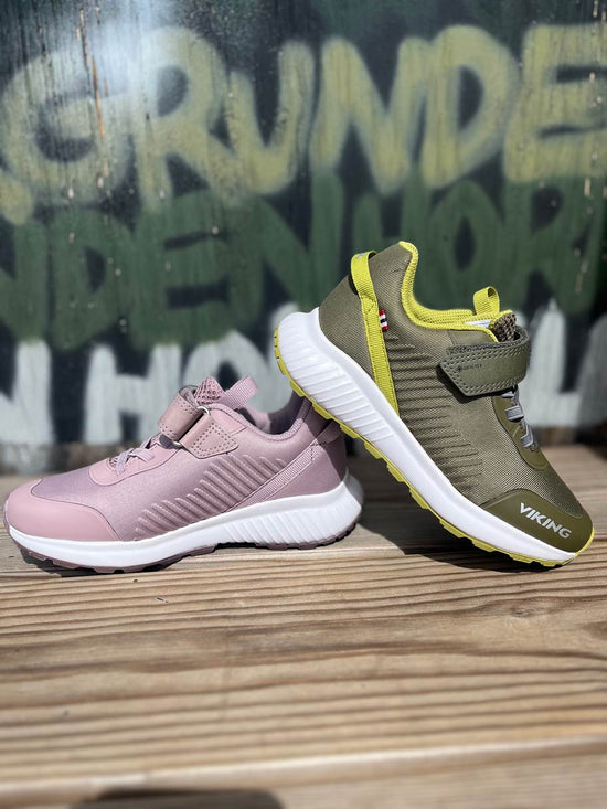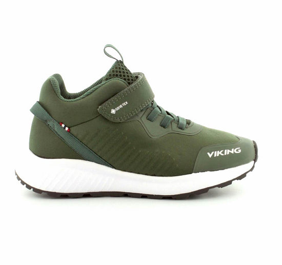 Super smarte sneakers fra Viking, der er perfekte i overgangen. Det er model Aery Tau Mid GTX i en flot armygrøn farve. Skoen er med et lille eksytra skaft, så den støtter lidt mere. Der er Gore-Tex membran så den er 100 % vandtæt, og så kan den tåle at vaskes i maskinen på 30 grader skånevask. Dejlig praktisk med velcro og elastik snørebånd.