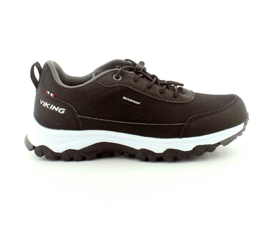 Rigtig god tonsersko fra Viking, model Crude Low Waterproof i sort tekstil. Skoen er med elastiksnøre, så den er hurtig at få på, og den er vandtæt. Gode robuste gummisåler under hele bunden.