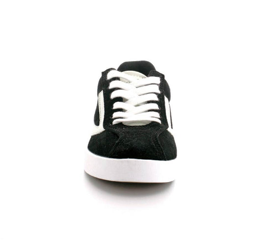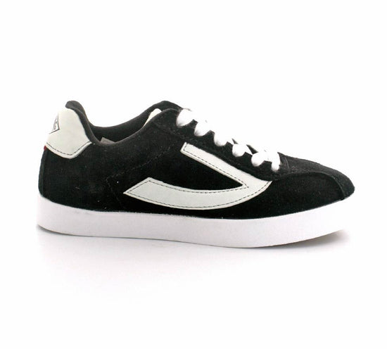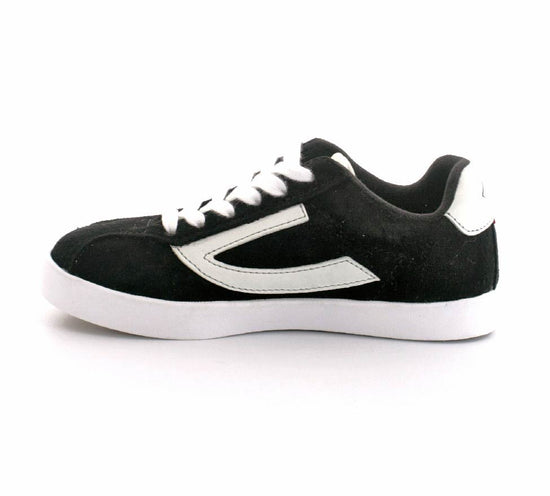 Retro sneakers fra Viking model Retro Trim i sort ruskind. Smart detalje med hvide snørebånd, hvide såler og et enkelt look. Skoen fra Viking er en unisex model. Den har et godt hold på foden og er lavet på en lidt smallere læst. Der er bløde fleksible og stødabsoberende såler under hele bunden.