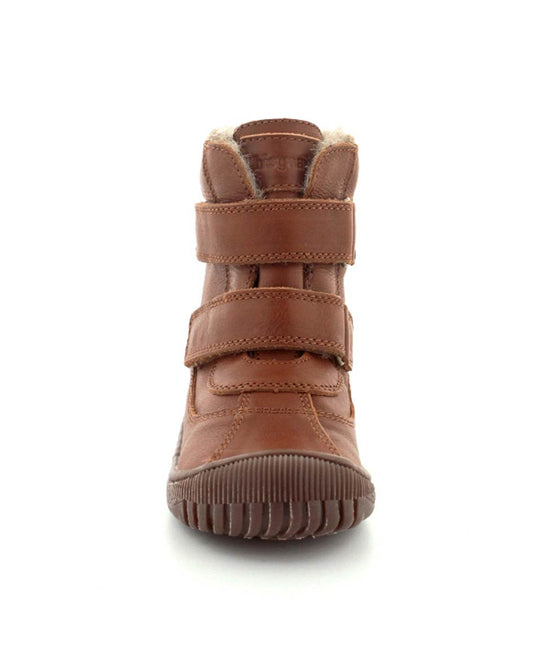 Super lækker vinterstøvle fra Bisgaard i cognacfarvet skind. Støvlen har en rigtig god pasform med god fast hælkappe, gummisnude og to regulerbare velcroremme. Støvlen passer godt til en smal og normal fod, da den kan strammes helt til. Støvlen fra Bisgaard er foeret med rigtig uld og har aftagelige uldsåler. Der er Tex membran, så den kan klare sne og kulde. Bløde fleksible gummisåler under hele bunden.