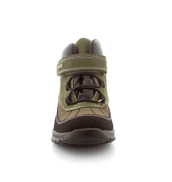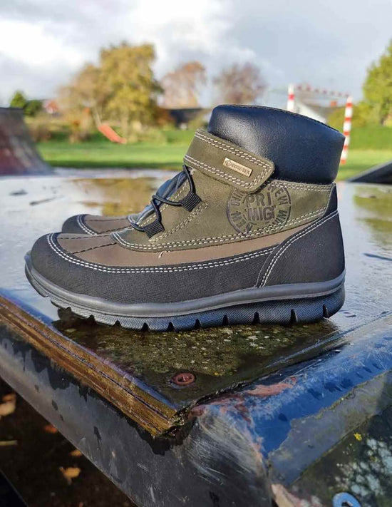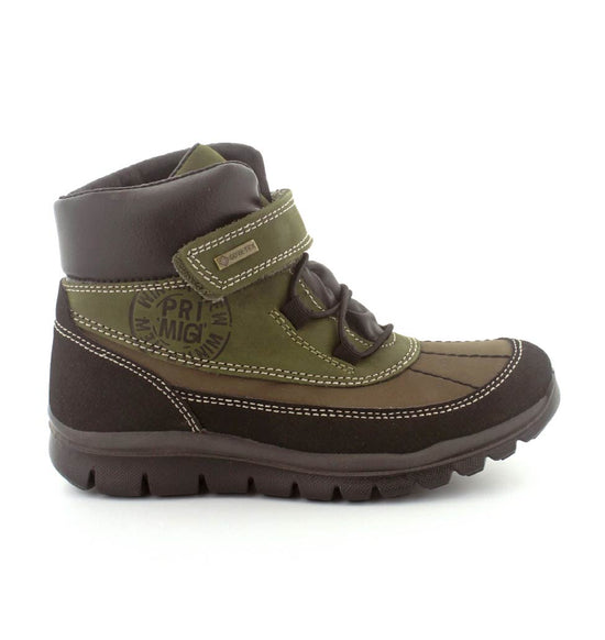 Super smarte vinterstøvler fra Primigi i en flot armygrøn farve. Støvlerne er lette at komme i med elastiksnøre og velcrorem. Super godt hold på foden, dejlig varmt foer og så er den med GoreTex membran, så den er vandtæt.