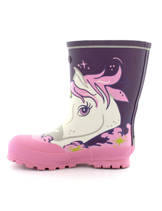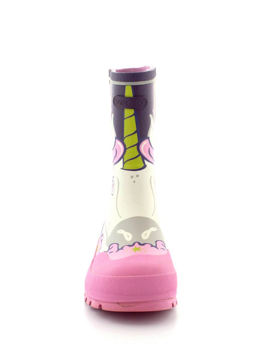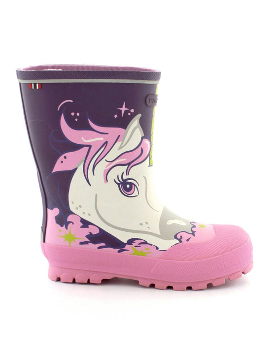 Den fineste lyserøde gummistøvle fra Viking model Jolly med Unicorn print på. Støvlen er i naturgummi med ekstra forstærkning på snuden og gode profilsåler. Den er god bred og stor i størrelsen.