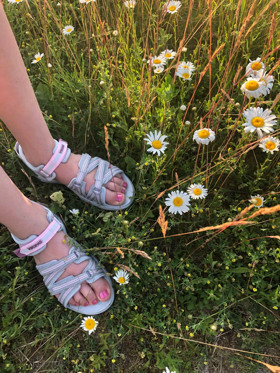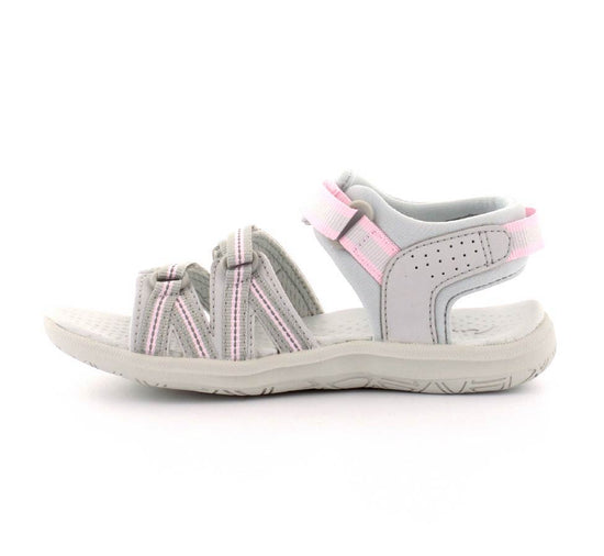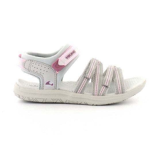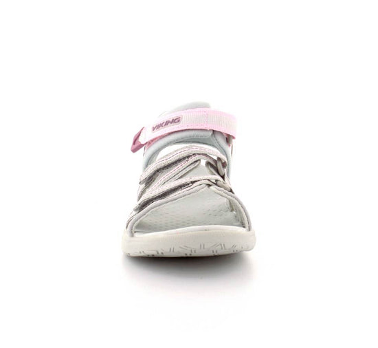 Super smarte sportssandaler fra Viking model Molly i en flot lysgrå/rosa farve. Sandalen er lavet på en smallere læst, så den passer til smalle og normale pigefødder. Der er tre regulerbare velcroremme, så den kan tilpasses perfekt. Sandalen fra Viking kan tåle vand og kan vaskes på 30 grader skåneprogram. Der er bløde, fleksible og stødabsoberende gummisåler under hele bunden.