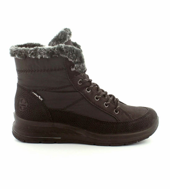 Rigtig god og let vinterstøvle fra Rieker, der både har snørebånd og lynlås på indersiden. Nem at komme i og med dejlig varmt foer. Der er en god bredde i støvlen og der er Rieker-Tex membran, så den er god til sne og kulde.